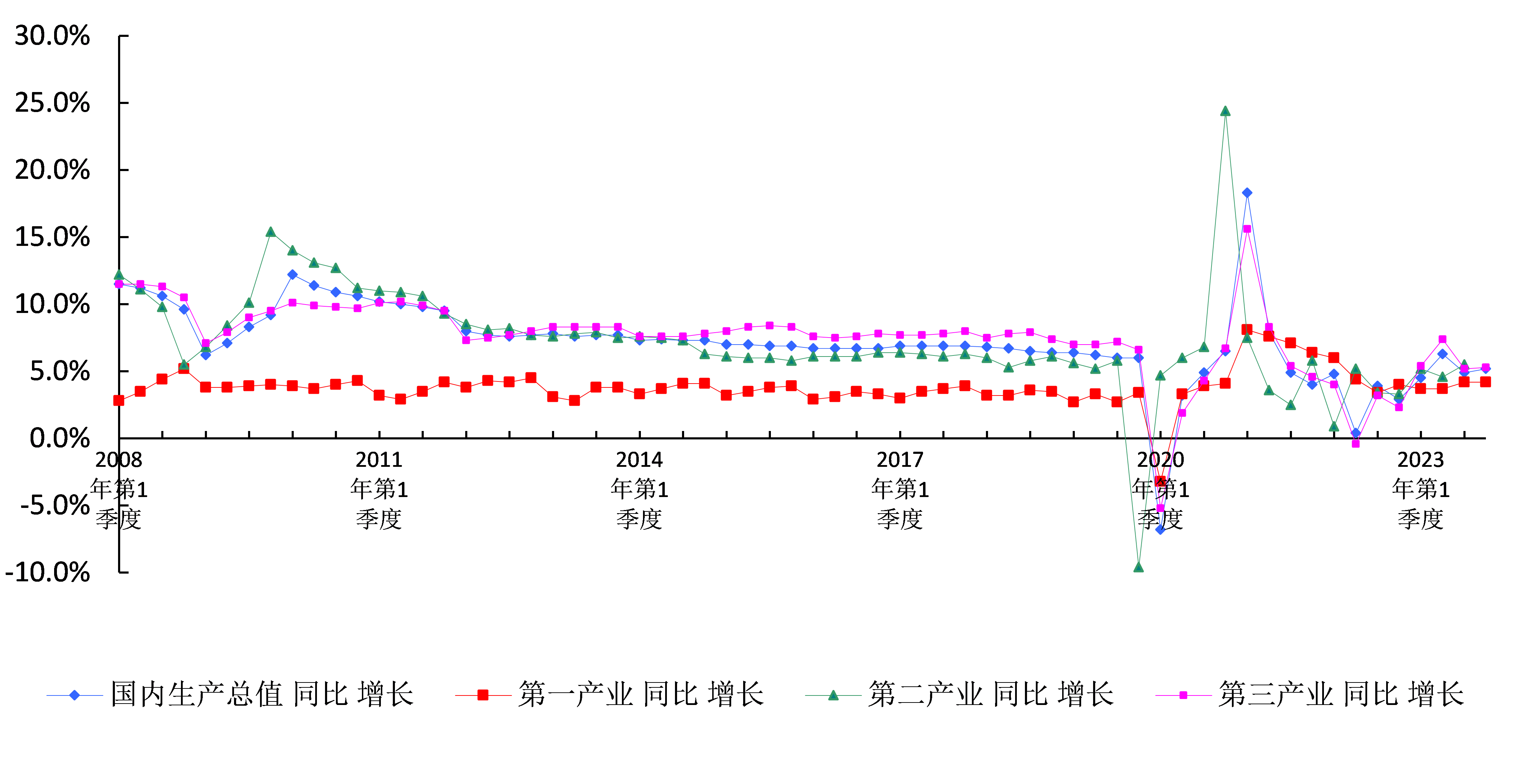 2008年第1季度-2023年第4季度國(guó)內(nèi)生產(chǎn)總值(GDP)情況(二)