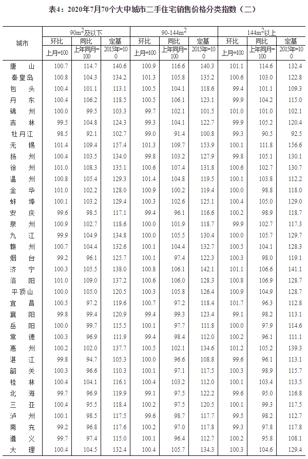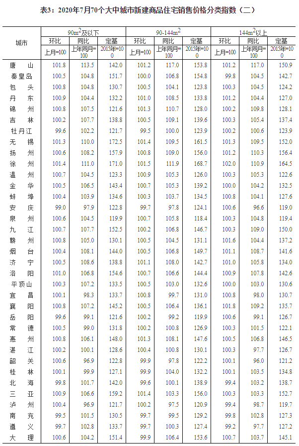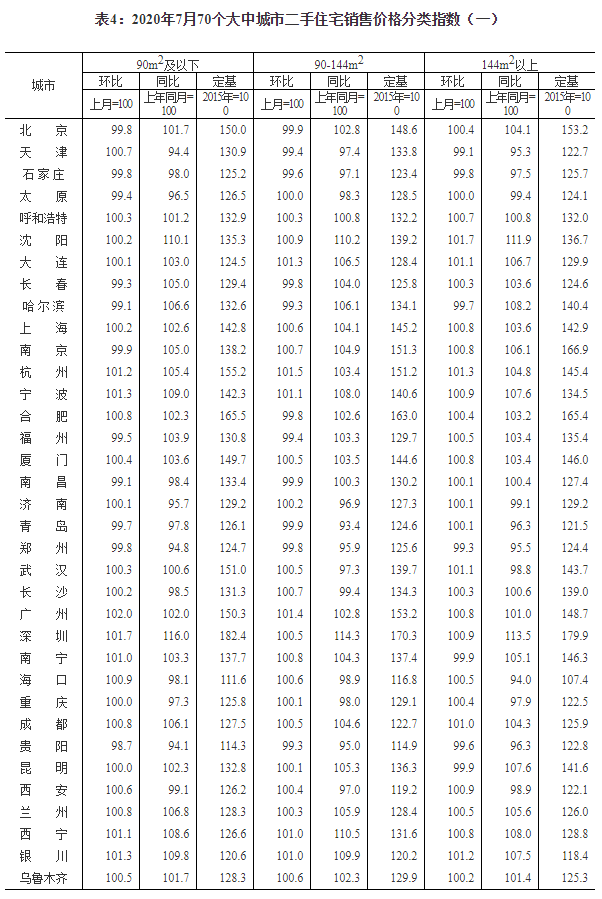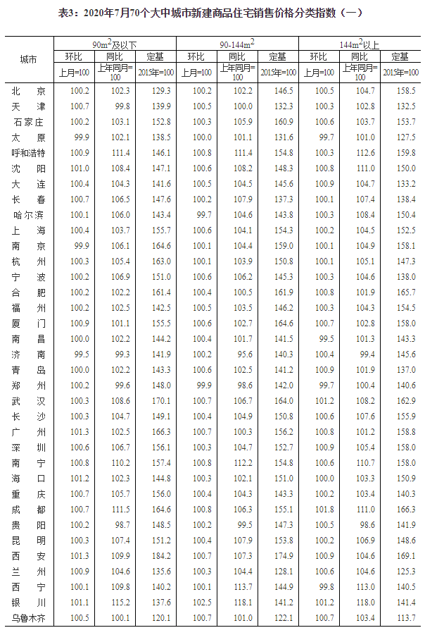 2020年7月份70個(gè)大中城市商品住宅銷售價(jià)格變動(dòng)情況
